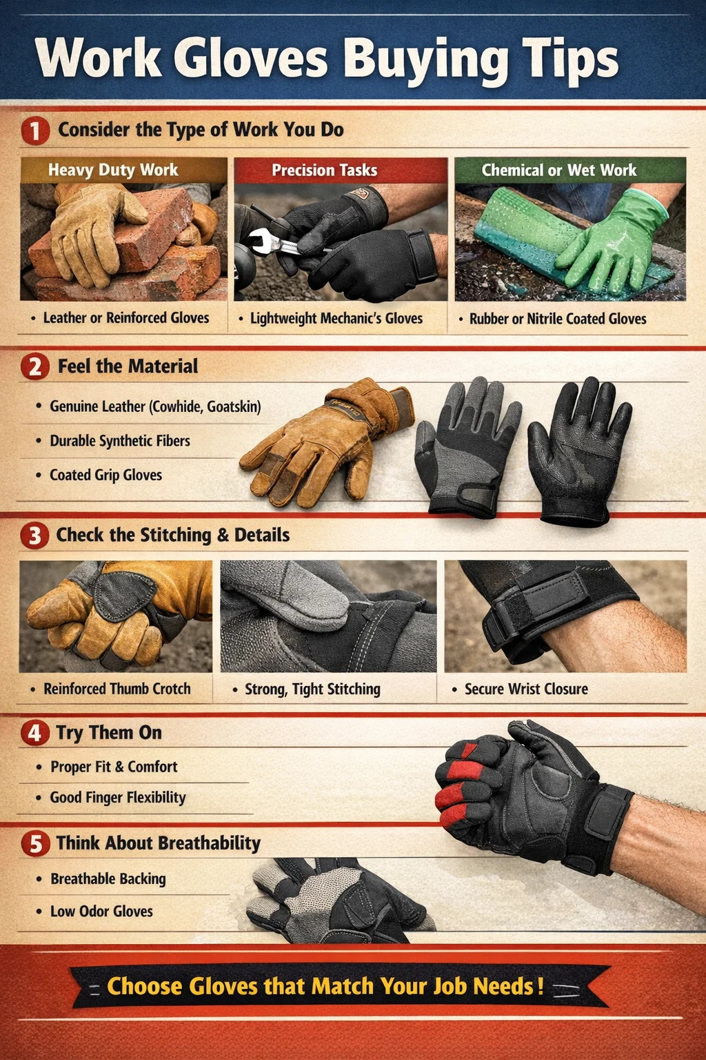 Wybór naprawdę wygodnych i skutecznych rękawic roboczych jest jak wybór butów – należy wziąć pod uwagę zarówno trwałość, jak i wygodę. Przy tak dużej liczbie opcji dostępnych na rynku może to być przytłaczające. Aby znaleźć parę, która chroni Twoje dłonie i jest trwała, zacznij od tych prostych wskazówek: